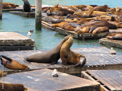 © Cardaf, Fototapeta premium sea lion fighting on the wharf