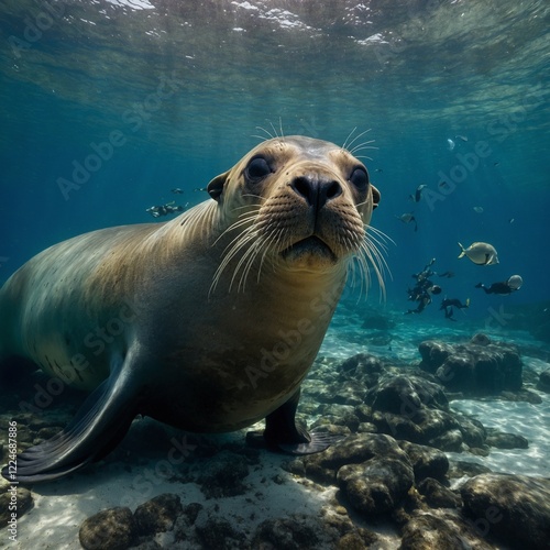 © Kora, Fototapeta premium Sea lion for a playful underwater photo.