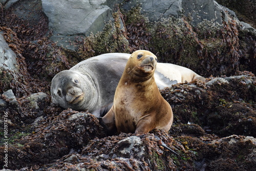 © Malika, Obraz premium sea lion on rock, ushuaia, argentina