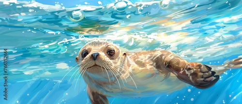 © Wall, Fototapeta premium Sea lion painting in water, head above surface, looking upward