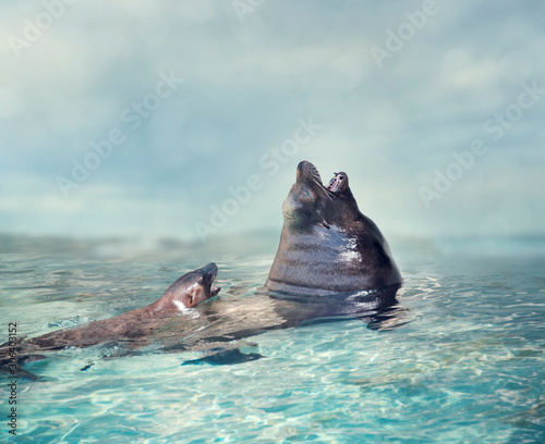 © SunnyS, Fototapeta premium Sea lions baby and mom
