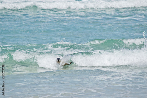 © susan flashman, Naklejka premium sea lions in the surf on Seal Bay