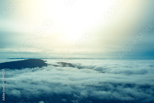 Fototapeta premium Sea of mist and early morning sunrise background
