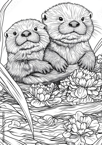 © Sumon, Obraz premium Sea Otters Coloring Pages