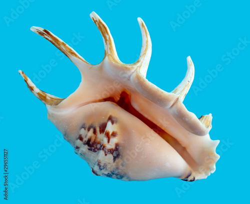 Obraz premium Sea shell isolated on a blue background