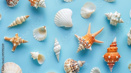 Obraz premium Sea shells on blue background