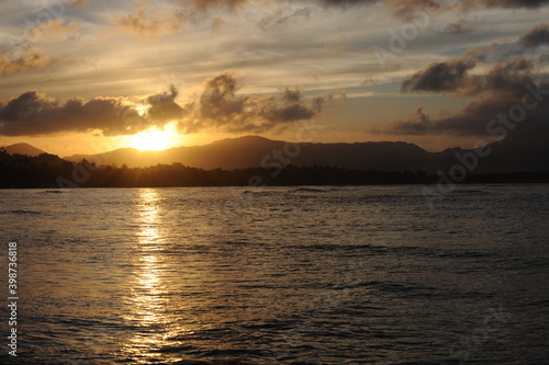 Fototapeta premium Sea shorr sun set view with hills