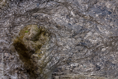 © Olga, Naklejka premium Sea stones in the sea water. Pebbles under water. The view from the top. Nautical background. Clean sea water. Transparent sea.