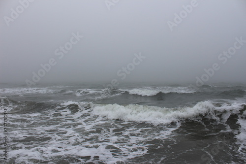 © Александр Шмидт, Fototapeta premium Sea storm in cold winter morning and fog