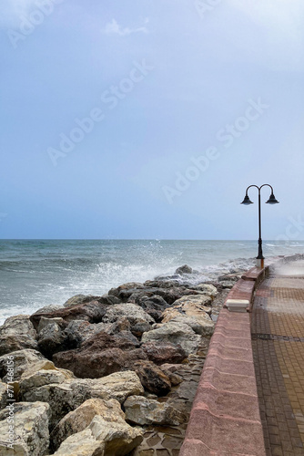 Obraz premium Sea storm on wharf in Torremolinos, Spain