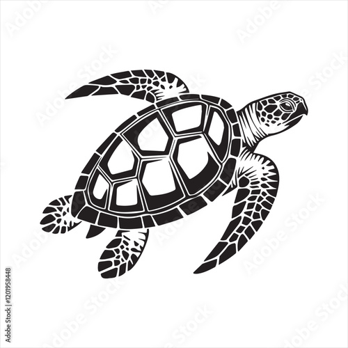 Fototapeta premium Sea Turtle Black and White Vector Illustration,Stylized Sea Turtle Design...