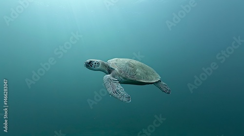 © ms25designs, Fototapeta premium Sea turtle glides through deep blue water