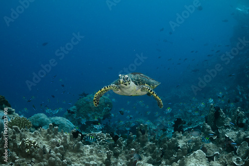 Fototapeta premium Sea turtle. Incredibly wondrous underwater world of West Papua. West Papua diving is breathtakingly spectacular, and truly unforgettable