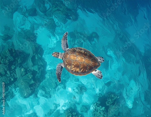 © 4812, Naklejka premium Sea Turtle Migration Aerial Tracking View