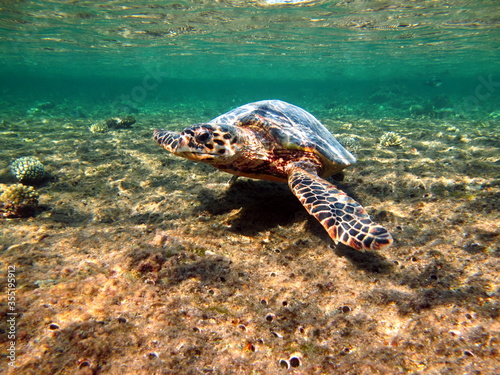 © Vitalii6447, Obraz premium sea turtle on the beach
