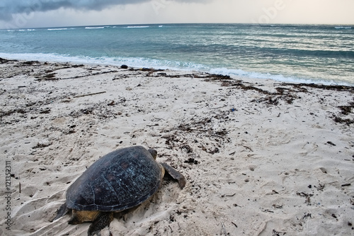 Naklejka premium Sea turtle on the beach in Diani Beach, Kenya