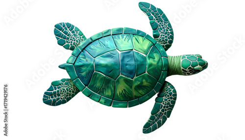 © idudung, Fototapeta premium Sea turtle plasticine clay icon isolated on white background top view mosaic scutes