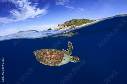 Obraz premium Sea Turtle split photo half and half over under