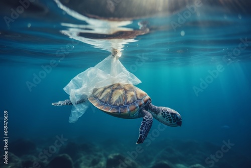 © urdialex, Obraz premium sea turtle stack with a plastic underwater in the sea
