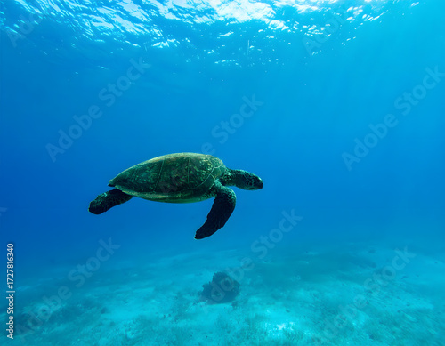 © faiz, Obraz premium Sea Turtle Swimming Gracefully in Clear Blue Ocean Water