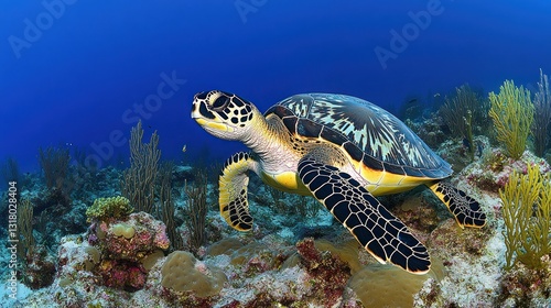 © andi, Fototapeta premium Sea Turtle Swimming in Coral Reef