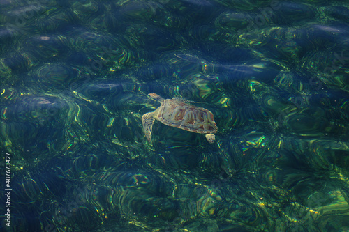 Naklejka premium Sea turtle swimming in the beautiful clear water.