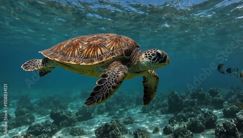 Fototapeta premium Sea turtle swimming in the ocean.