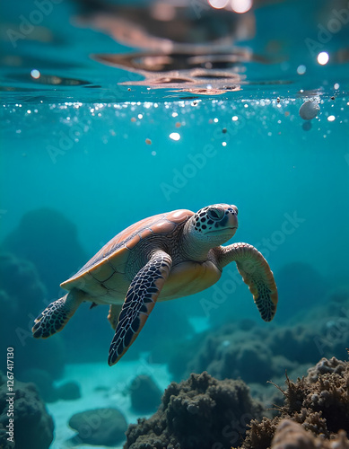 © muhammad, Obraz premium sea turtle swimming in the sea