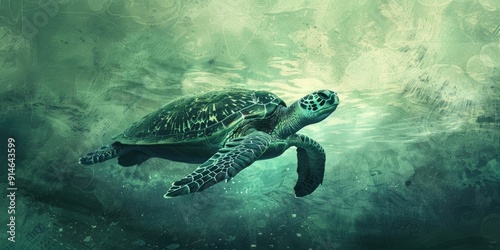 Fototapeta premium Sea turtle swimming in turquoise water.