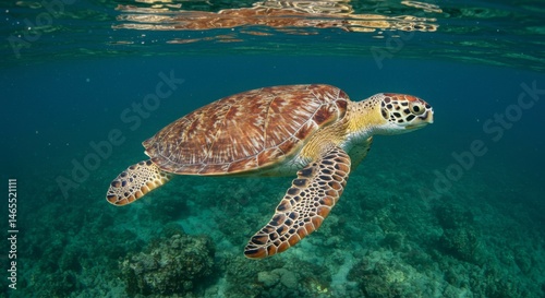 Fototapeta premium Sea turtle swimming over coral reef (2)