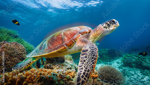 © Matthias, Fototapeta premium Sea Turtle Swimming Over Coral Reef