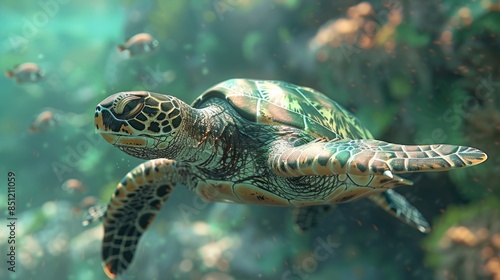 Fototapeta premium Sea Turtle Swimming Through a Coral Reef