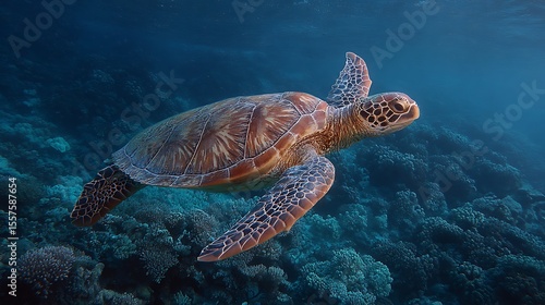 © Sri, Obraz premium Sea turtle swims on reef