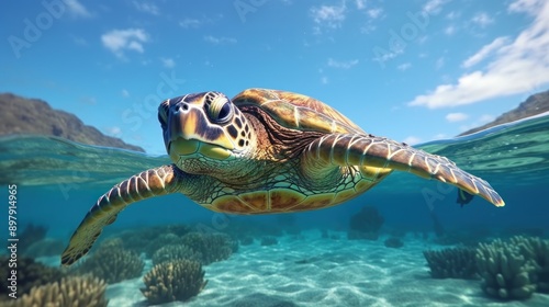 © daisha, Fototapeta premium Sea Turtle Underwater