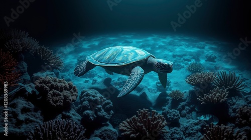 Fototapeta premium Sea Turtle Underwater Coral Reef Scene Ocean Wildlife