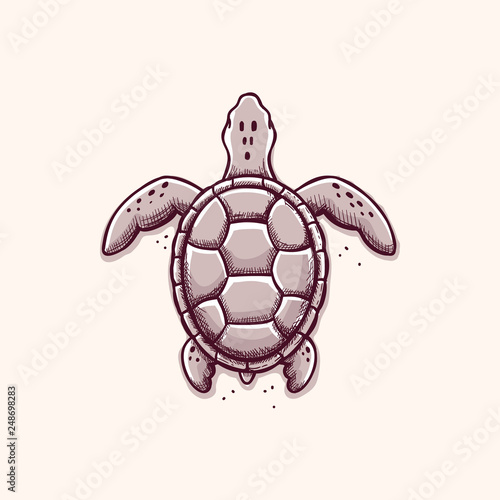 Fototapeta premium Sea turtle vintage drawing sketch vector illustration