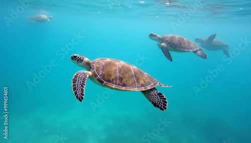 © SwathiFX, Obraz premium Sea Turtles in the Deep Blue