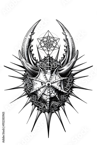 Obraz premium Sea Urchin head very simple traditional tattoo flash styles illustration