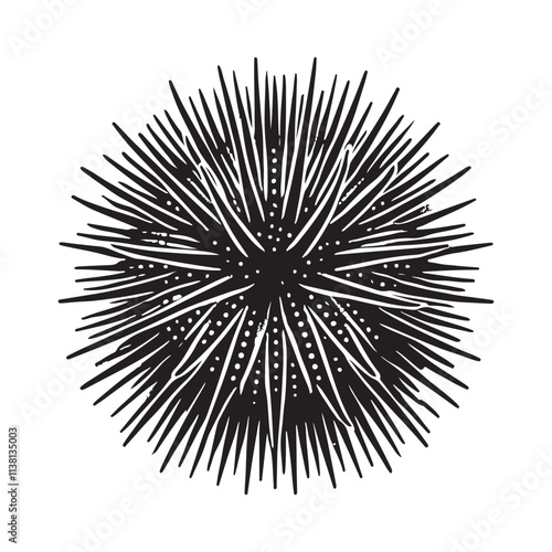 Fototapeta premium Sea Urchin Silhouette Vector Illustration, Solid White Background.