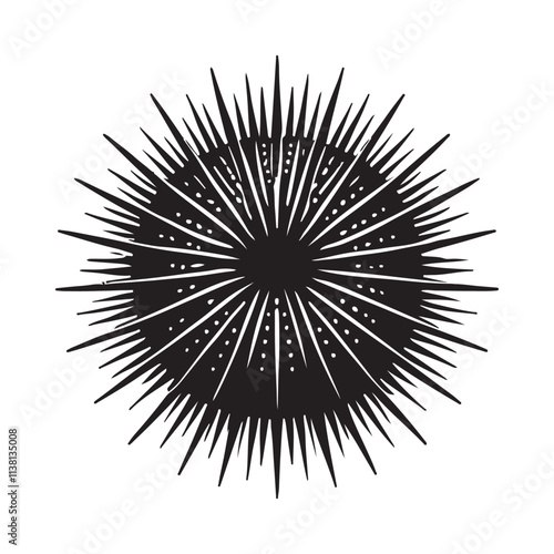 Obraz premium Sea Urchin Silhouette Vector Illustration, Solid White Background.