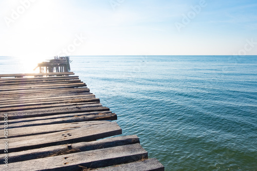 © Waraphot, Obraz premium Sea view, blue sky, old wooden bridge, beautiful summer