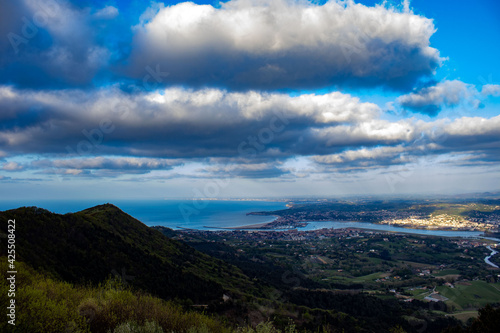© Josu, Fototapeta premium Sea view with large beach and blue sky and mountains