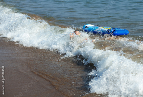 © Julia Mashkova, Naklejka premium Sea wave covered the child.