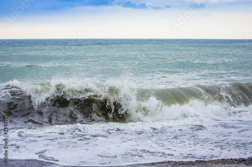 Fototapeta premium sea wave, storm on the ocean, wave coming ashore