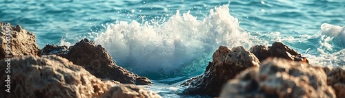Obraz premium Sea Waves Crashing Against Rocky Shore - Photo
