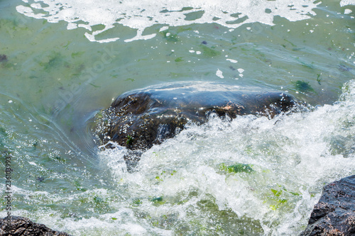 © Julia, Obraz premium Sea waves crashing on the rocks. Black sea. Bulgaria