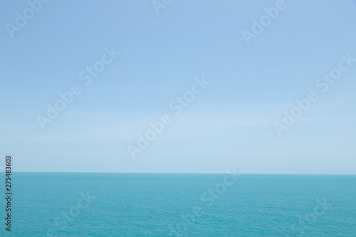 © methaphum, Obraz premium Sea waves in ocean wave splashing thinly ripple water. Blue water and sky background.