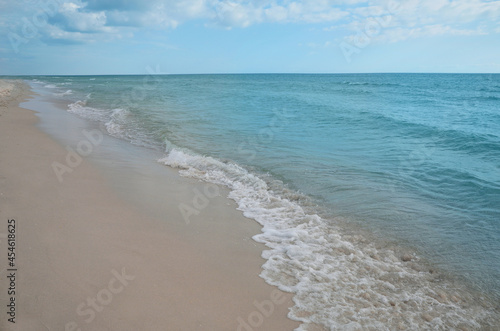 Fototapeta premium Sea waves rolling onto sandy tropical beach