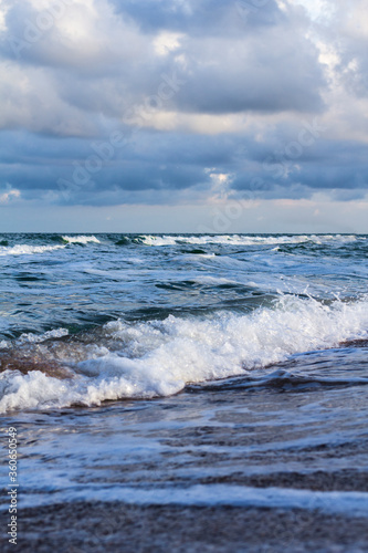 © ppvector, Fototapeta premium Sea waves, sandy beach and clouds