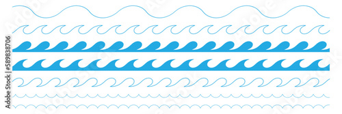 © Oleksandr, Fototapeta premium Sea waves. Waves. Set. Vector illustration on a white background.
